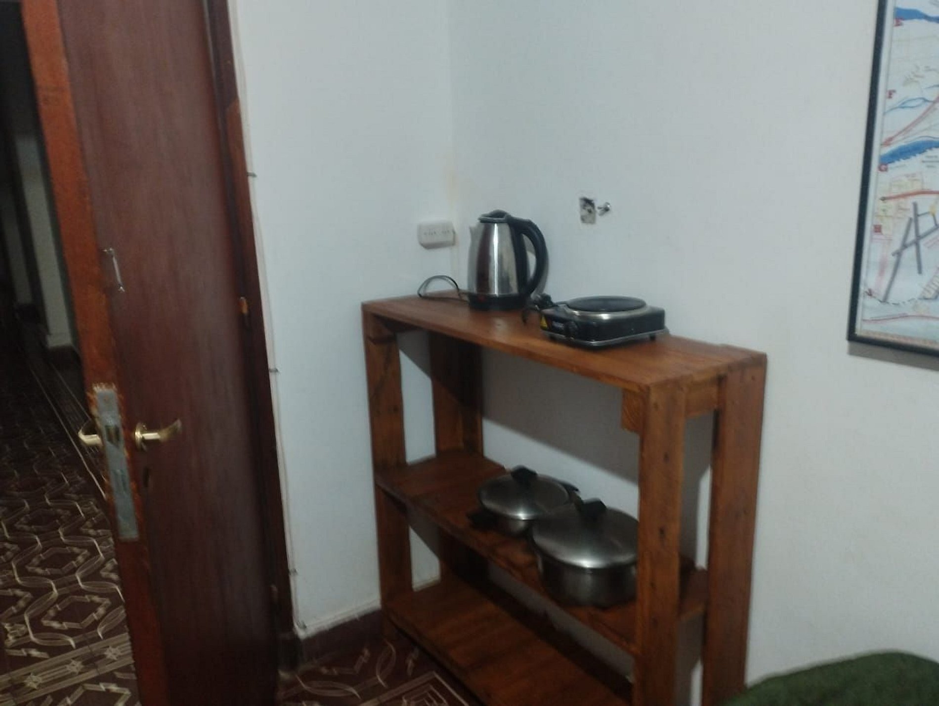 NO CUENTA CON COCINA: Tiene anafe y pava eléctrica, heladera, microondas, vajilla, utensilios de cocina
